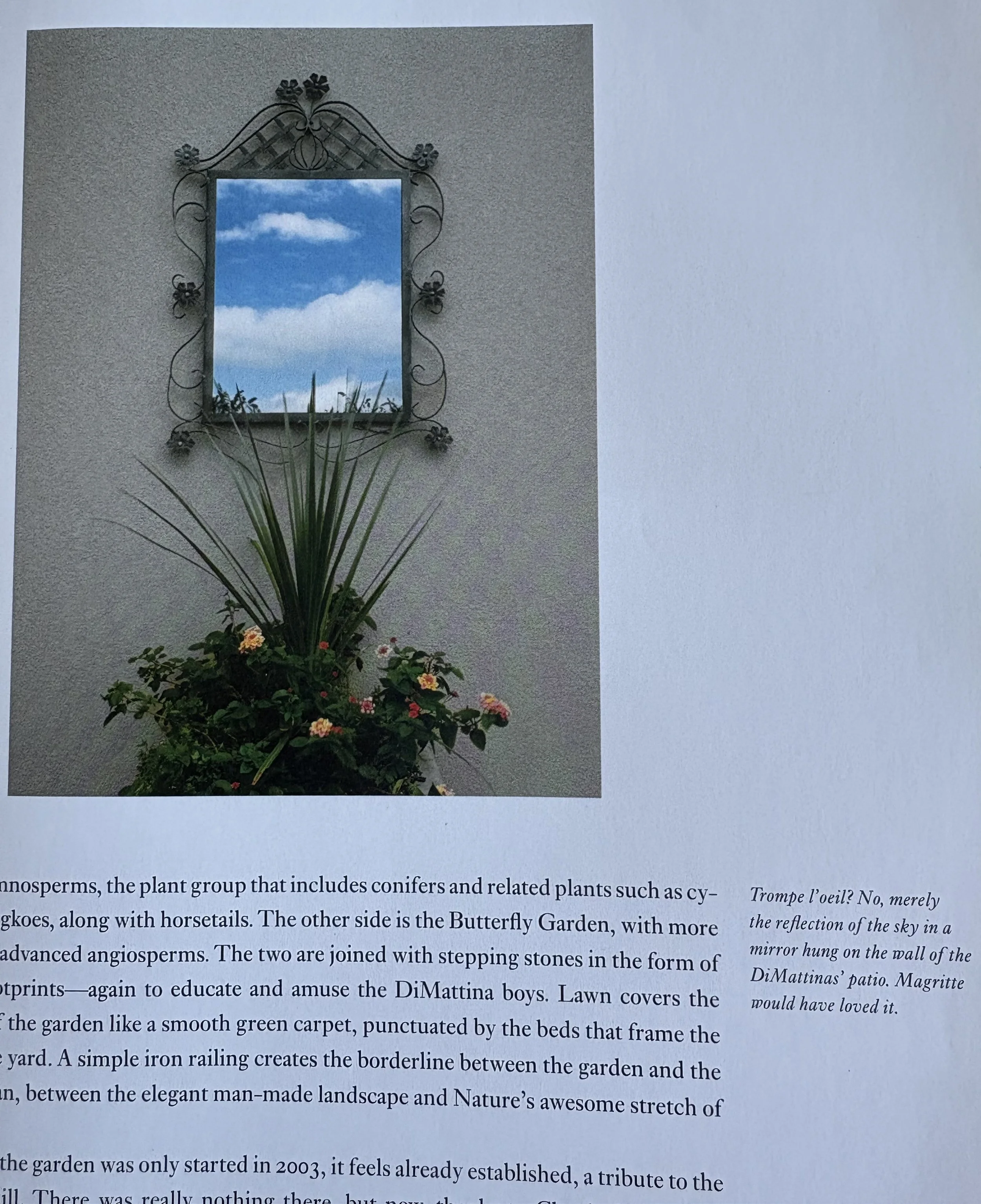 As far back as (gulp) 2006, I featured this charming mirror composition for a favorite client whose view looked out on the bay and Gotham skyline. It so enchanted author, Caroline Seebohm, that upon seeing it, she declared, “Look, Leeann ~ it is Magritte!) and had Peter Cook photograph it for her book, Cottages and Mansions of the Jersey Shore (I am honored to have two client landscape designs featured in this gorgeous house and garden book.)