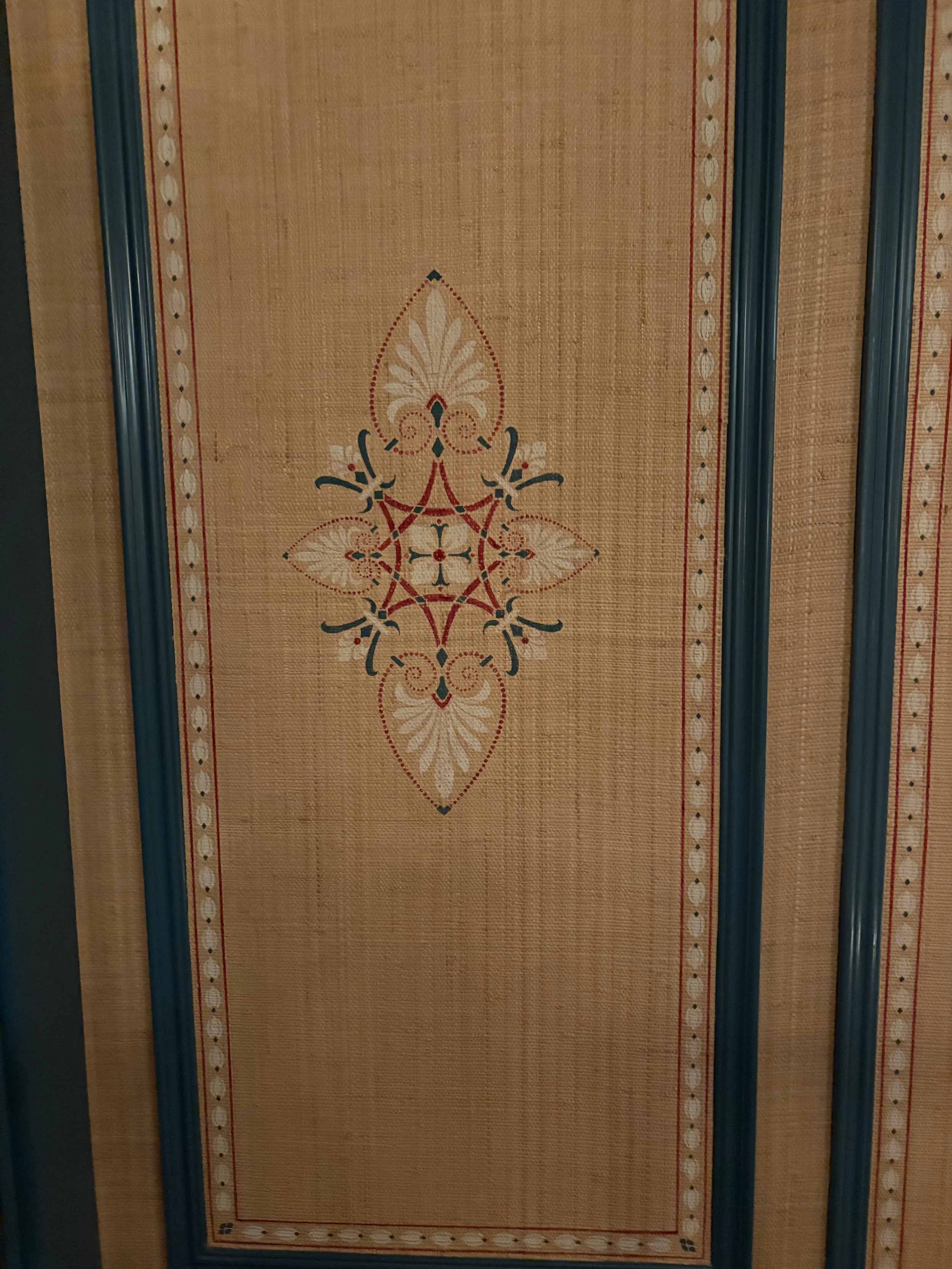 And the inside of the front door that’s hand-painted ~ and that I / no one ~ would ever have seen unless the docent pointed it out, as she did for me when she admired my animal print fashions. (I posted this lucky find on Instagram to much delight from Followers.” Fun.