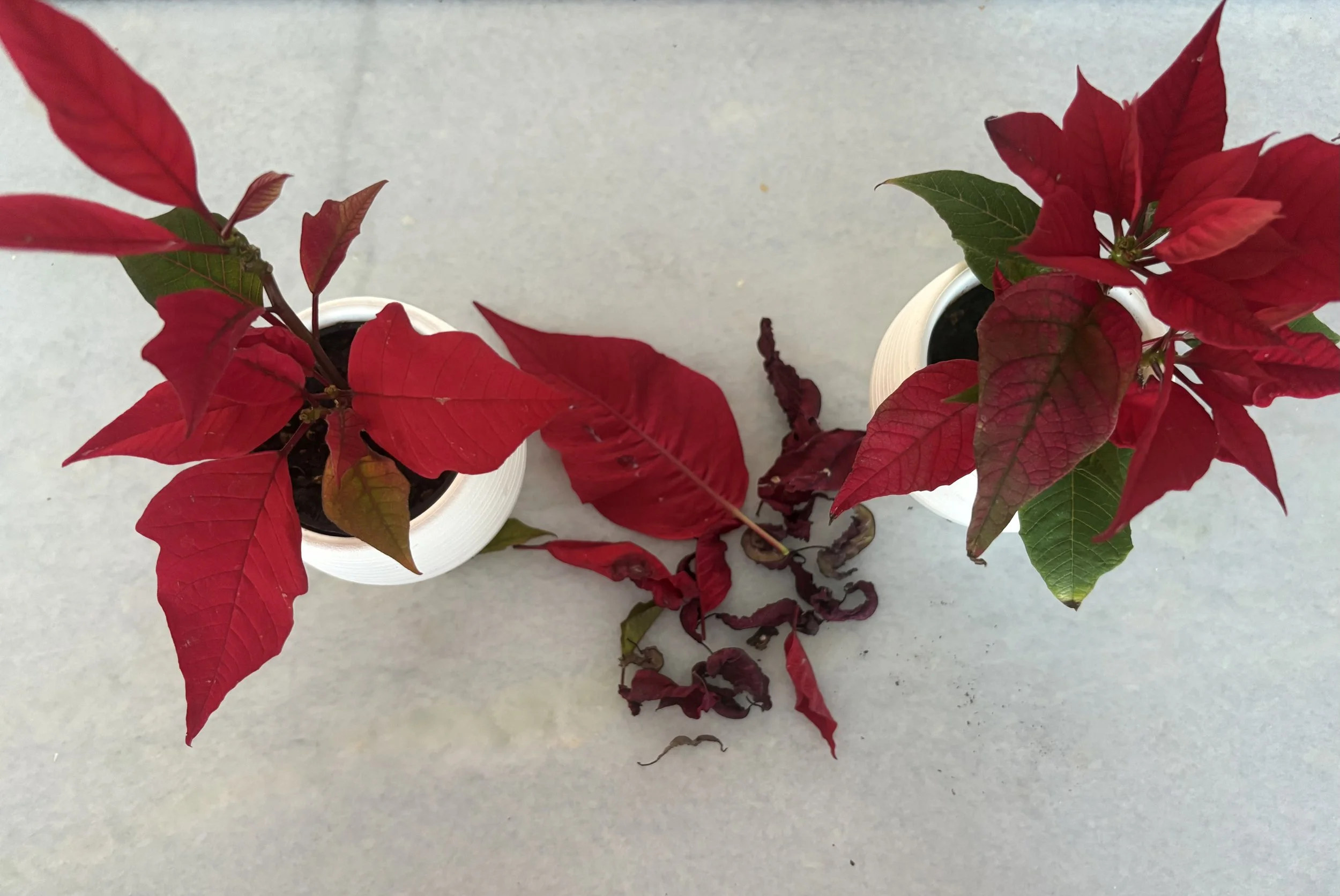 I simply used the colorful fallen bracts (leaves) from my poinsettia plants. You can trim the bracts if you are choosing not to keep the beautiful plant and nurture it in order to replant or bring outside in the spring ~ (even though this snowmaggeden winter in the Northeast seems like it’s been forever, spring will be here all too soon).