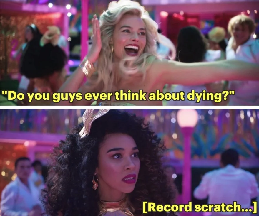 Death also had a point of connection in the recent, runaway hit movie Barbie that was a (surprise) cultural phenomenon. As she becomes aware of mortality, our girl asks, "Do you guys ever think about dying?" during a dance party scene that brings the exuberance to a screeching halt.