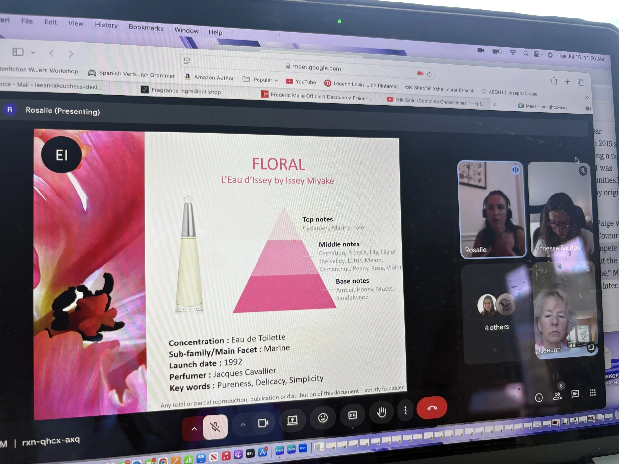 When tasked with creating our first fragrance, two of the women told their perfum stories in brilliant powerpoint presentations!
