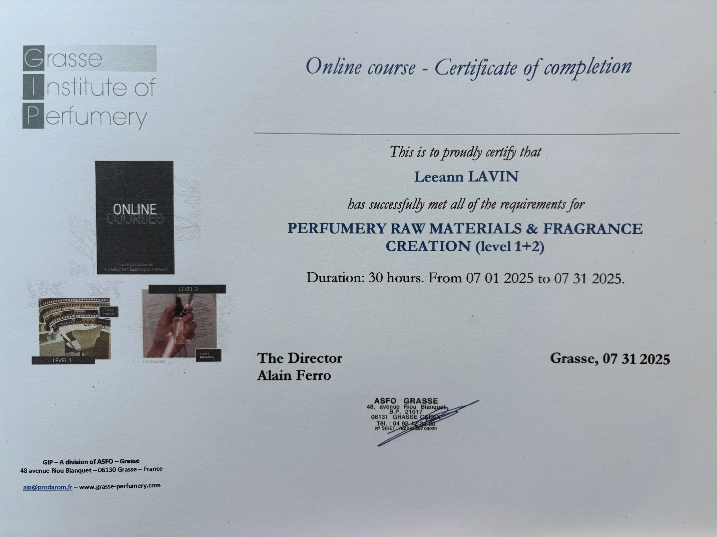 Let me explain. Recently, I was a very happy student of the university of Grasse ~ the world capital of perfume.