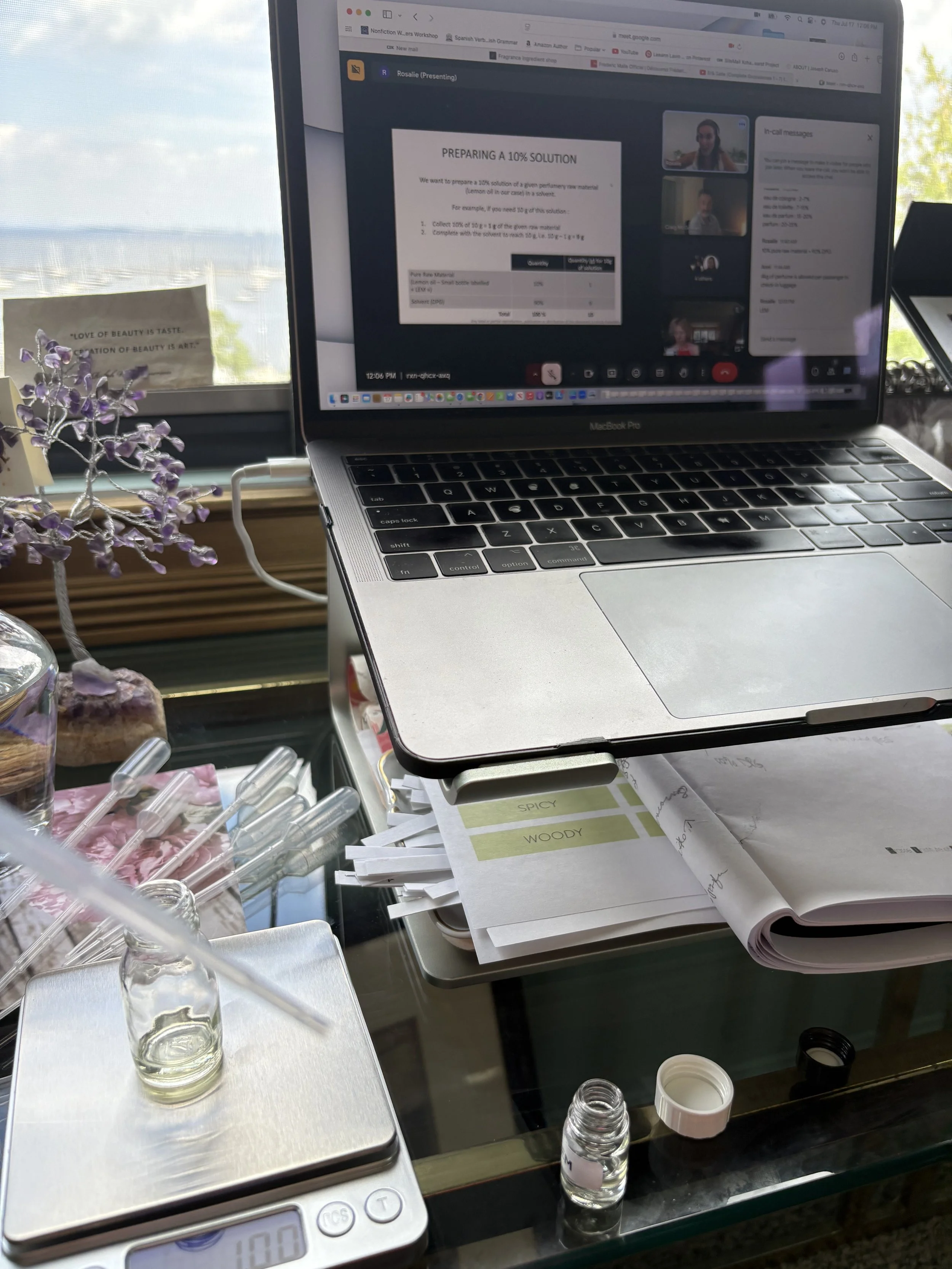 The classes were so enjoyable, rigorous, and adventurous. The world of perfume is vast ~ brimming with exoticism and romance. I look forward to continuing this perfume journey.